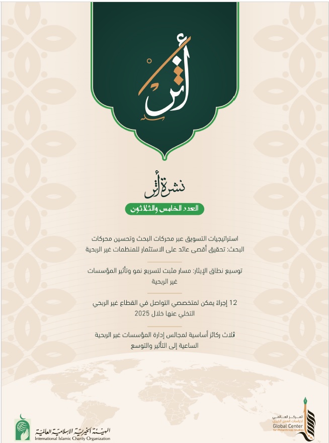 Image Slide 1Image Slide 1 Image Slide 1Image Slide 1 الكل 2025 استطلاعات رأي تقارير الاستدامة تقارير عالمية مترجمة تقارير قياس الأثر تقديرات موقف خلاصات معرفية دراسات وأدلة سلسلة المعلومات ودعم القرار في العمل الإنساني نشرة أثر خلاصات معرفية – عدد 38 مسيرة راسخة وأثر متجدد (تقرير الاستدامة لعام 2024) تقدير موقف:تقييم مجموعة العمل المالي للقطاع غير الربحي خلاصات معرفية – عدد 37 خلاصات معرفية – عدد 36 تقدير موقف: تقييم الوضع الإنساني في سوريا Feeding A Billion Hungry Worldwide – Programs and Activities Report مبادرة إطعام مليار جائع – تقرير البرامج والأنشطة نشرة أثر – عدد 36 نشرة أثر – عدد 35 خلاصات معرفية – عدد 35 خلاصات معرفية – عدد 34 خلاصات معرفية – عدد 33 نشرة أثر – عدد 34 نشرة أثر عدد 33 توظيف أوامر الذكاء الاصطناعي في إعداد مقترحات المشروعات الإنسانية بناءً على نظرية التغيير نشرة أثر 32 نشرة أثر 31 نشرة أثر 30 نشرة أثر 29 خلاصات معرفية 32 خلاصات معرفية 31 خلاصات معرفية 30 خلاصات معرفية 29 قياس الأثر والعائد الاجتماعي على الاستثمار لمشروعات الهيئة الخيرية الإسلامية العالمية الهيئة الخيرية أثر مستدام (تقرير الاستدامة الثالث لعام 2023م) تقدير موقف: الأزمة الإنسانية في السودان دليل إصدارات وأنشطة المركز العالمي لدراسات العمل الخيري نشرة أثر – عدد 28 تبلور الرؤية واستمرار التوجه المستدام (تقرير الاستدامة لعام 2022) خلاصات معرفية – عدد 28 تقدير موقف: وكالة الأونروا الشراكة مع المنظمات الإنسانية الدولية نشرة أثر – عدد 27 نشرة أثر – عدد 26 خلاصات معرفية – عدد 26 خلاصات معرفية – عدد 27 Managing the Recovery and Reconstruction Process in Post-Disaster Communities إدارة عملية التعافي وإعادة الإعمار في مجتمعات ما بعد الكوارث خلاصات معرفية – عدد 25 خلاصات معرفية – عدد 24 خلاصات معرفية – عدد 22